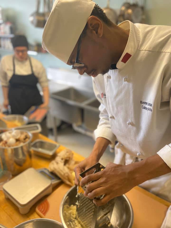 Keonne doesn’t bemoan his full schedule. “I work all day Monday, Wednesday, and Friday. I'm in class all day Tuesday and Thursday from 8 a.m. to 9 p.m. I have American Regional Cuisine, my favorite class so far, until 3:30, then I get about an hour break before Food and Beverage until 9 p.m. I do homework at night and on weekends.”