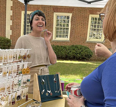 All my professors have been wonderful, and every class is so different, but my favorite is Floral Design with David Pippin. I took this class on a whim just for fun and discovered I have an eye for design and love using flowers as a medium. Colors, patterns, textures, shapes, sculptural elements, and past trends are so fun to learn about when creating arrangements. I started pressing the flowers we picked on campus for class and discovered resin crafting to preserve them. When I had too many pressed flowers, I decided to combine my love of design, flowers, and jewelry with them, and my business RVA Petal Party was formed!